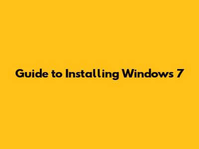 Guide To Installing Windows 7
