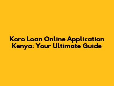 Koro Loan: Your Quick Guide To Online Applications In Kenya