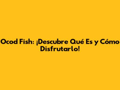 Ocod Fish: ¡Descubre Qué Es Y Cómo Disfrutarlo!
