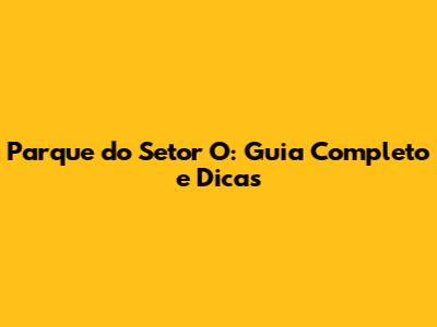 Parque Do Setor O: Guia Completo E Dicas