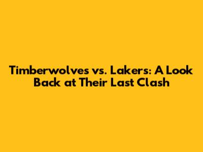 Timberwolves Vs. Lakers: A Look Back At Their Last Clash